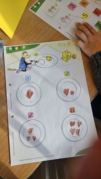 Im Gegenzug waren wir zusammen als Formendetektive unterwegs, haben mit dem Grüffelokind und der bösen Maus gereimt, Geschichten zu Bildern erfunden und neben den Ziffern bis 10 auch die Tierfamilien kennengelernt.