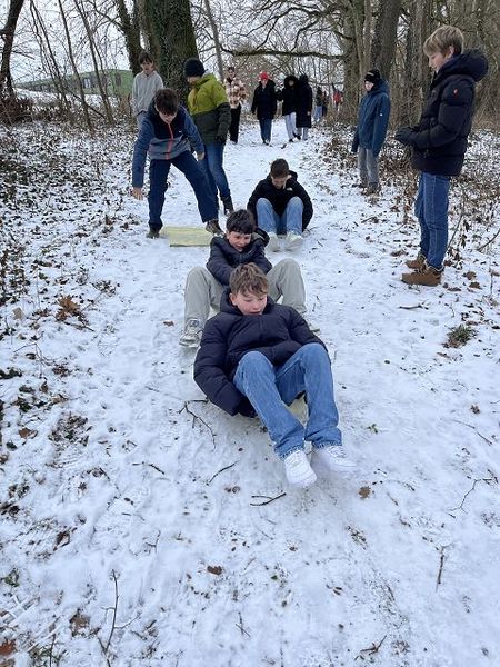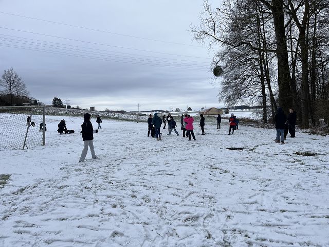 Endlich liegt Schnee! Das mussten wir direkt ausnutzen. Deshalb haben wir am 08.01. die fünfte Stunde spontan in den verschneiten Schlosspark verlegt. Einige hatten Tüten zum Rutschen dabei, andere haben riesige Schneekugeln gebaut. Die meisten haben sich aber an der Schneeballschlacht beteiligt. Solche Stunden sind uns echt die liebsten.