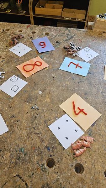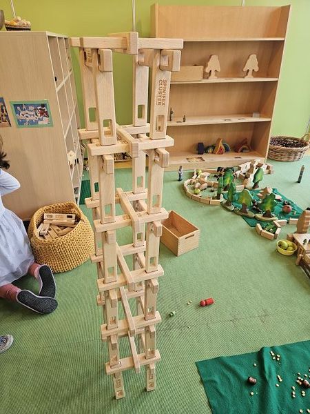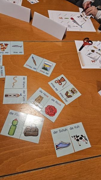 Im Gegenzug waren wir zusammen als Formendetektive unterwegs, haben mit dem Grüffelokind und der bösen Maus gereimt, Geschichten zu Bildern erfunden und neben den Ziffern bis 10 auch die Tierfamilien kennengelernt.